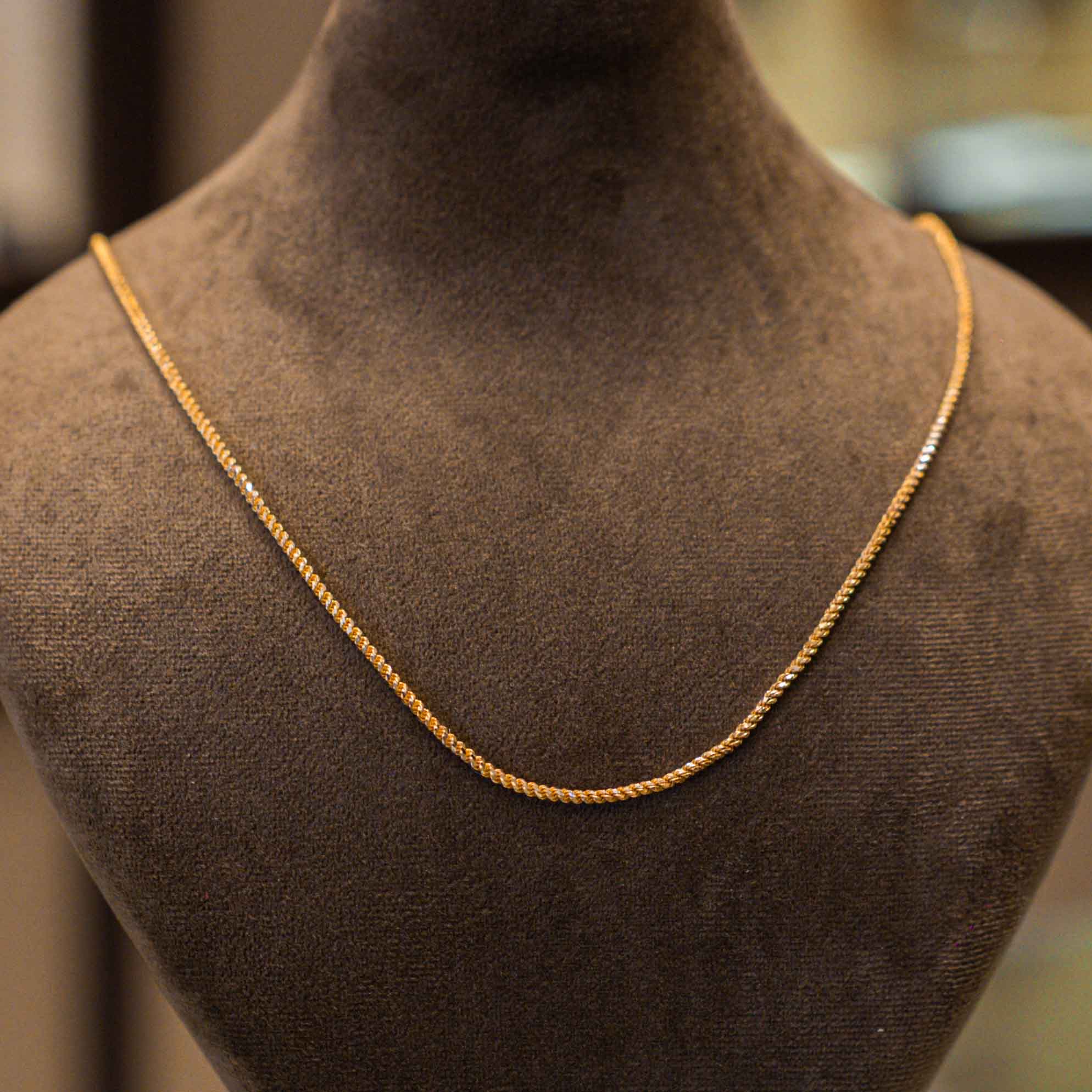 Crafted with pure 22 karat gold, this exquisite chain blends classic charm with modern sophistication. Its lustrous finish and perfect weight make it ideal for both daily wear and special occasions.